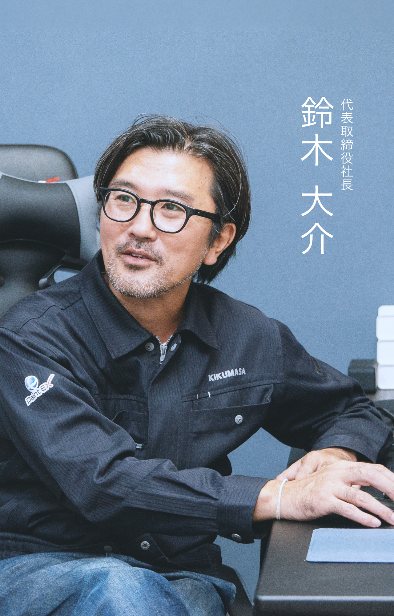 鈴木社長は、一般的な“社長像”とは少し違います。昔から組織に縛られるのが苦手で、学生時代にはバックパッカーとして世界を放浪し、帰国後は古着の輸入販売をしていたというユニークな経歴の持ち主。未経験の塗装業にすんなり入れたのも、固定観念にとらわれず、自由に生きてきたからこそかもしれません。そんな社長は、現場での上下関係や硬直したルールとは無縁。社員との会話も「対等」が基本で、違う意見も笑って受け入れる柔軟さがあります。